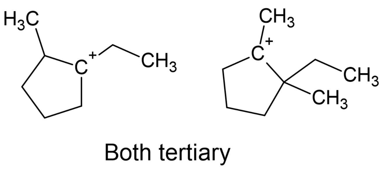 See the attached image.  If we consider the stereochemistry, and we define carbon 1 to be the positively charged carbon of the carbocation, a new chiral center is formed at carbon 2 when the methyl shift occurs, giving two enantiomers of the carbocation intermediate--one with the methyl group on carbon 2 wedged, and the other dashed.