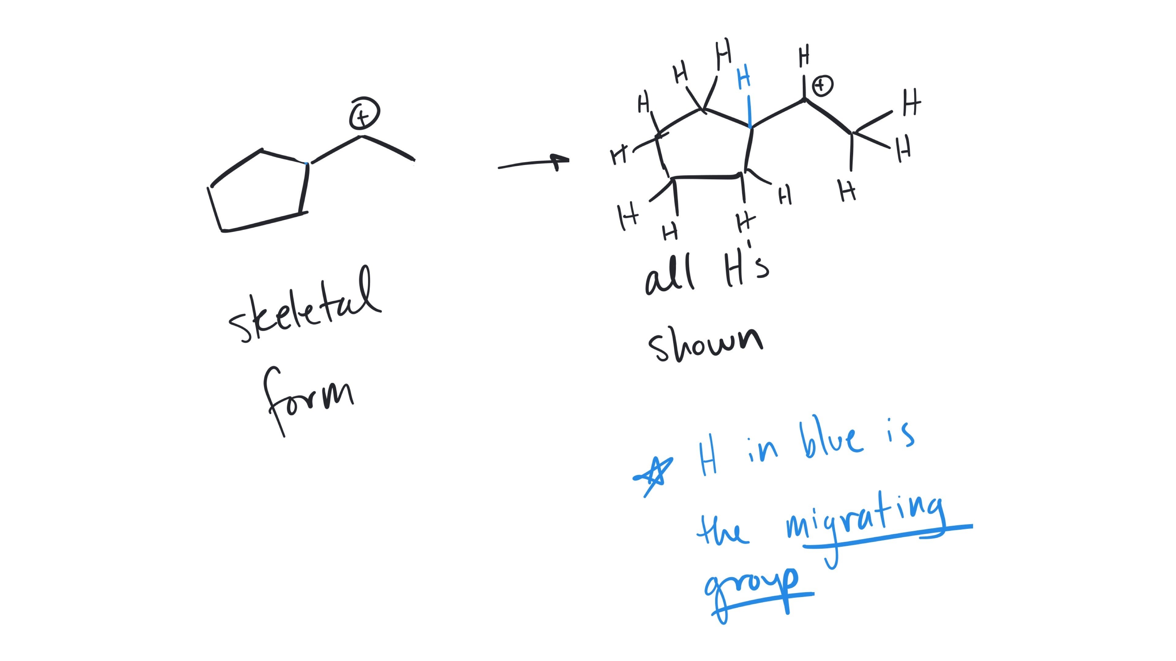 Yosra Abdallatif, yes exactly! The carbocation still has three bonds, 2 bonds to carbon and 1 bond to hydrogen which is not shown in the 'skeletal form' as a convention. Below I've drawn out all the 'implied' hydrogens on the molecule and highlighted the hydrogen that migrates in this problem.